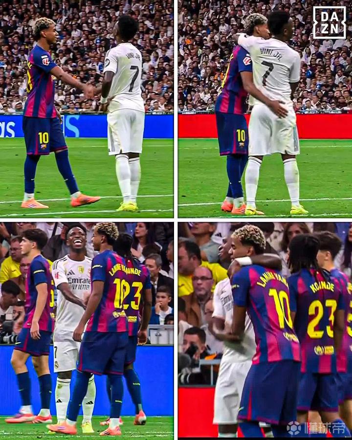 北京时间10月26日,在西甲联赛第10轮的焦点对决中,皇家马德里于西班牙国家德比中以2-1的比分力克巴塞罗那。赛后,以维尼修斯与亚马尔为代表的皇马球员与巴萨球员在赛场内外发生了激烈的冲突。然而,值得注意的是,在比赛进行期间,维尼修斯与亚马尔之间却展现出了友好的一面,两人还曾互相握手并拥抱致意。相关阅读【深度剖析国家德比冲突:佩德里成导火索,维尼修斯全程卷入】【维尼修斯发声:国家德比总是充满激情,我