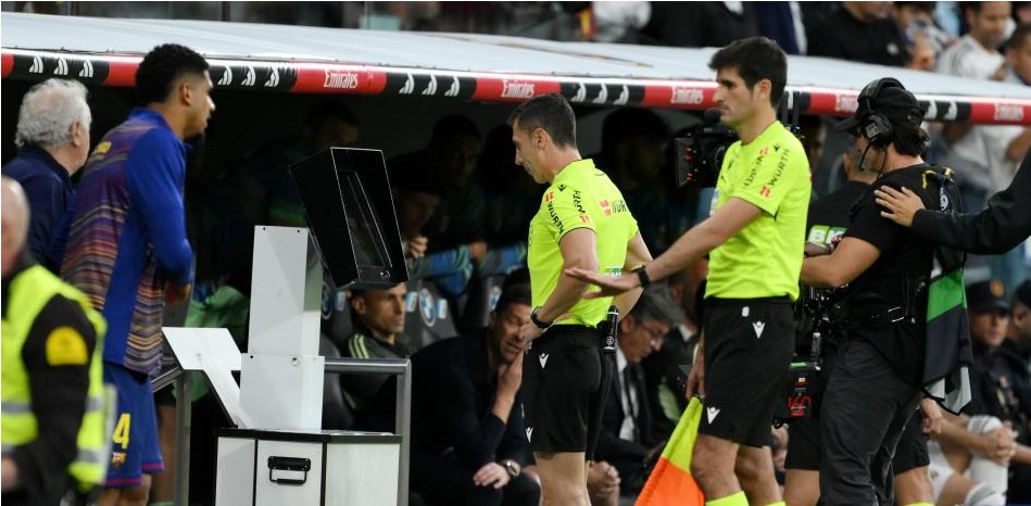 在昨晚进行的西甲第10轮赛事中,皇家马德里在主场以2-1的比分战胜了巴塞罗那。赛后,《世界体育报》公开了本场赛事中裁判与VAR之间的对话录音。首次VAR介入出现在比赛的第一分钟,当时亚马尔对维尼修斯犯规,主裁判判罚了点球,但VAR官员豪尔赫-菲格罗亚-巴斯克斯对此提出了异议:“塞萨尔,我建议你回顾一下,看看是否应该取消这个点球,等你到屏幕前时,请告知我。”当主裁判塞萨尔-索托-格拉多走到显示器前时